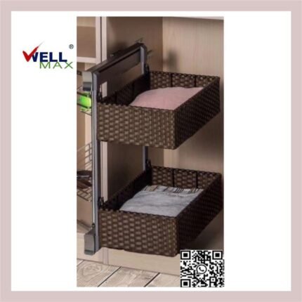 Aluminum frame structure with adjustable width of 100mm; Equipped with 450mm full pull-out damping slide rail. it is mainly used for storing trousers in bedroom wardrobe and high-purity aluminum alloy frame to ensure the toughness and hardness of aluminum frame. Pure steel plate structure, basket body surface treatment adopts advanced nano dry plating process, with super anti-corrosion and anti-rust function.